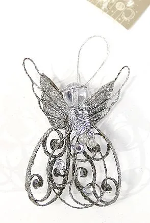 Элегантный серебристый ангел со стразами и ажурной отделкой станет изысканным украшением для вашего новогоднего декора. Прекрасный выбор для тех, кто ценит красоту и стиль.